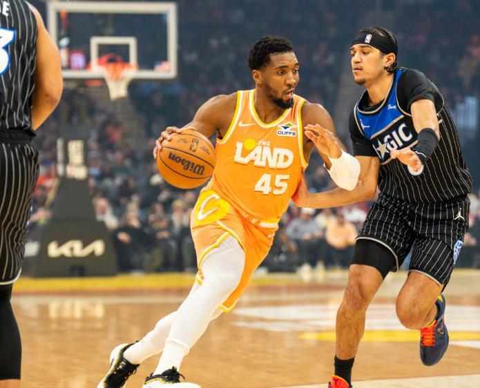 腾讯体育-班凯罗37分完胜探花郎,米切尔45+4+4,骑士双杀魔术豪取四连胜