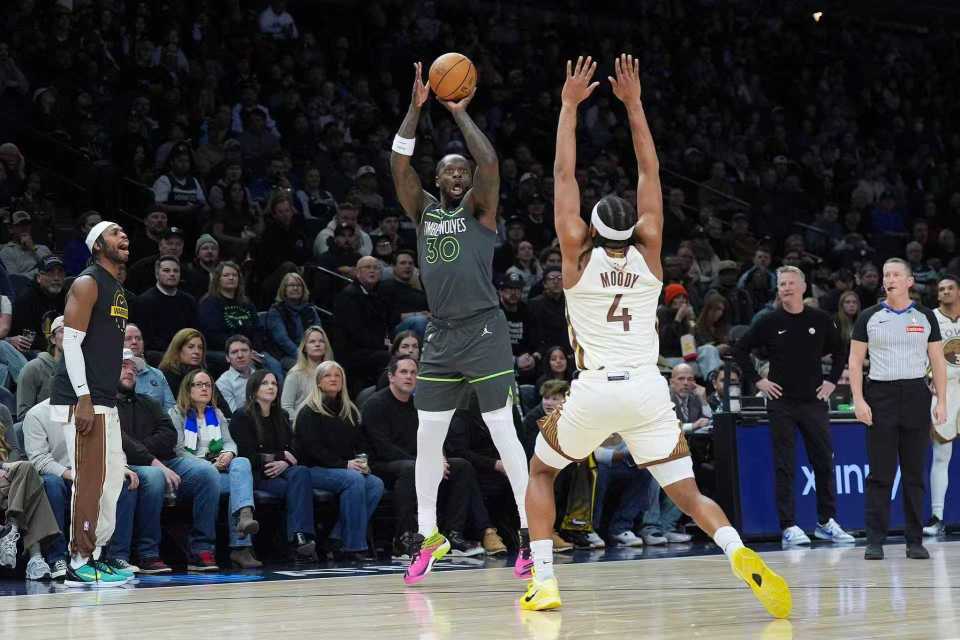 勇士:戈贝尔15分17篮板,麦克丹尼尔斯14分3篮板3助攻3盖帽,兰德尔18分7篮板,迪文琴佐5记三分15分8助攻,里德3记三分15分7篮板3助攻3抢断,海兰德3记三分17分7篮板5助攻。
